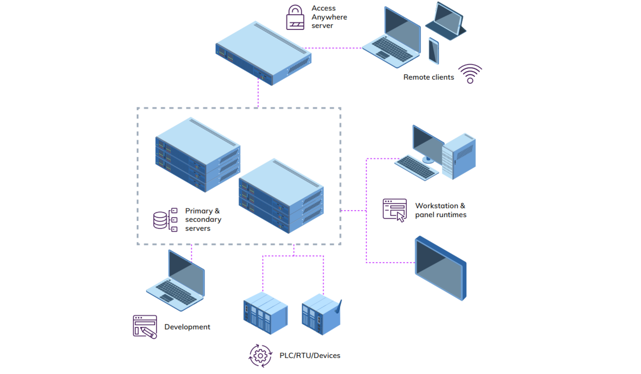 Với AVEVA™ Plant SCADA Access Anywhere nhà vận hành từ xa có thể truy cập ứng dụng Plant SCADA hoàn chỉnh thông qua bất kỳ trình duyệt web tuân thủ chuẩn HTML5 nào trên mọi thiết bị (PC, laptop, máy tính bảng, điện thoại thông minh).