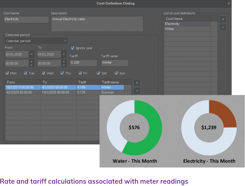 Việc tính toán chi phí tự động đòi hỏi sử dụng các lịch trình và biến (variables) để xác định chi phí phù hợp sử dụng tại bất kỳ thời điểm nào. AVEVA Reports for Operations hỗ trợ một công cụ tính toán chi phí rất mạnh mẽ, giúp phần mềm trở thành một giải pháp lý tưởng cho bất kỳ ứng dụng thanh toán hoặc phân bổ chi phí nào.