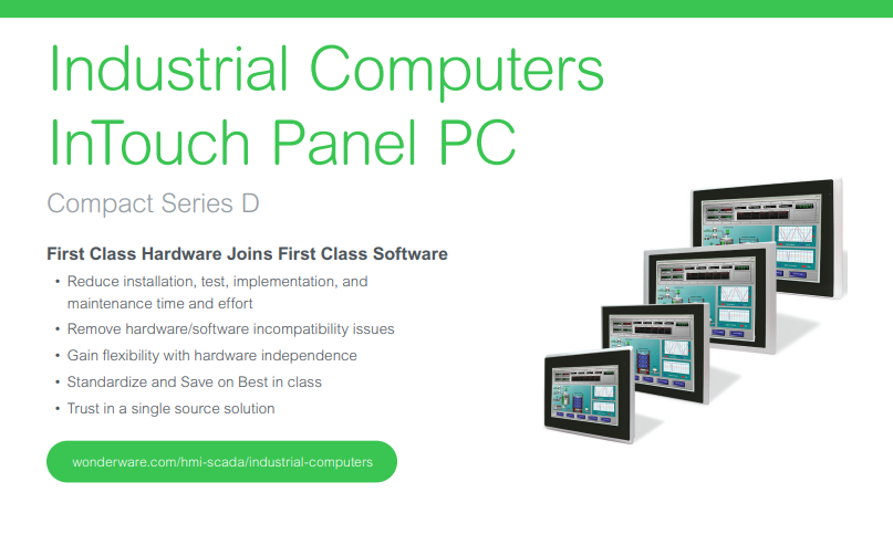 Máy tính Công nghiệp Wonderware cho phép các tổ chức thoát khỏi phần cứng độc quyền và giao diện đồ họa chức năng yếu. Những máy tính này giúp tiêu chuẩn hóa trên một giao diện trực quan mạnh mẽ phổ biến đối với các ứng dụng mức máy và giám sát giao diện người máy (HMI). Tiêu chuẩn hóa vượt trội giúp tận dụng đầy đủ các khoản đầu tư kỹ thuật, rút ngắn chu kỳ phát triển, mang lại nhiều giá trị hơn cho người sử dụng hoặc khách hàng với tổng chi phí thấp hơn.