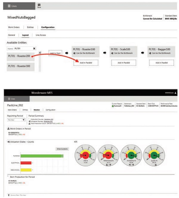MES Performance được thiết lập nhanh chóng bằng cách cấu hình thiết bị, trạng thái sử dụng và lý do trong giao diện người dùng dựa trên web của nó. Một dòng dễ dàng được mô hình hóa bằng cách kéo và thả thiết bị vào một bố cục cho biết dòng sản phẩm.