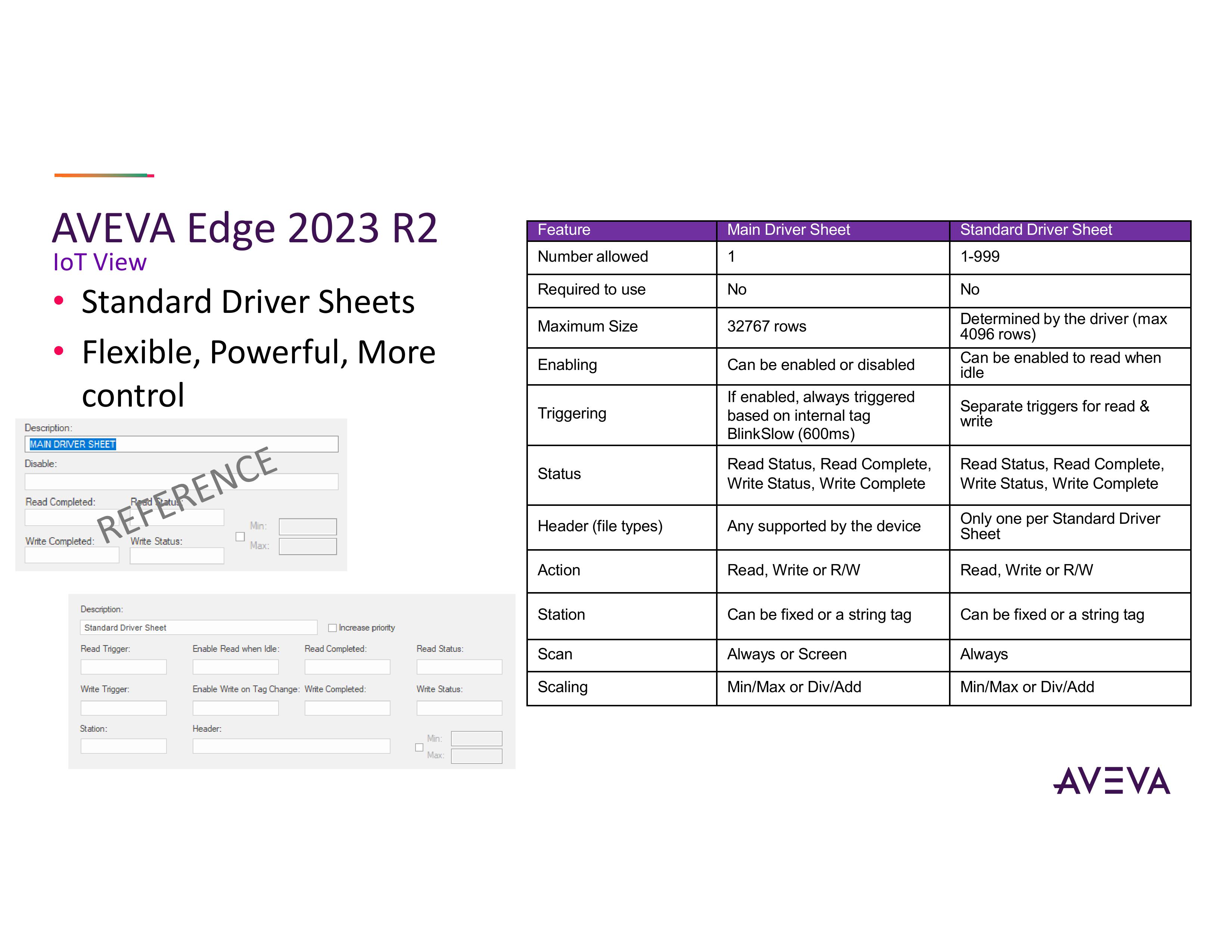 Ngoài ra, trên IoT View, phần mềm cũng đã thêm khả năng hỗ trợ các bảng trình standard driver sheets. Hỗ trợ các bảng trình standard driver sheets và main driver sheets trong nhiều năm trên Windows. Hiện tại ngoài các bảng standard driver sheets trên Linux, hãngs đã thêm các bảng trình main driver sheets. Điều này mang lại cho bạn sự linh hoạt hơn trong việc khi nào kích hoạt các lệnh đọc và ghi. Người dùng có thể làm cho chúng nhanh hơn so với standard main driver sheets. Hoặc nếu muốn hoạt động đọc/ghi thực hiện linh hoạt sau mỗi 15 phút hoặc 01 ngày tùy thuộc vào nhu cầu của bạn.